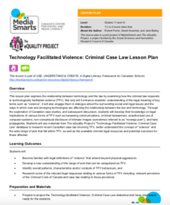 Here you will find the most recent eQuality Lesson Plans! These lesson plans are produced in partnership with the eQuality Project’s partner MediaSmarts, and serve as further opportunities for the dissemination of, and engagement with our Project’s research. You will find a complete list of our current lesson plans below, available as downloadable .PDF documents.